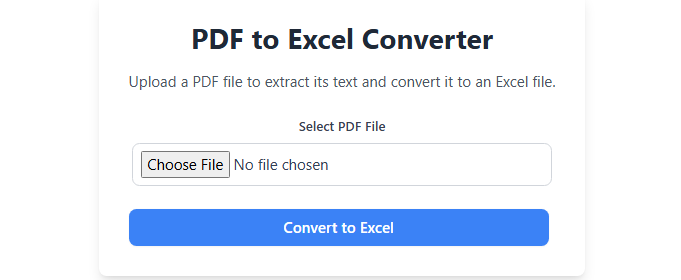 Upload a PDF file to extract its text and convert it to an Excel file.